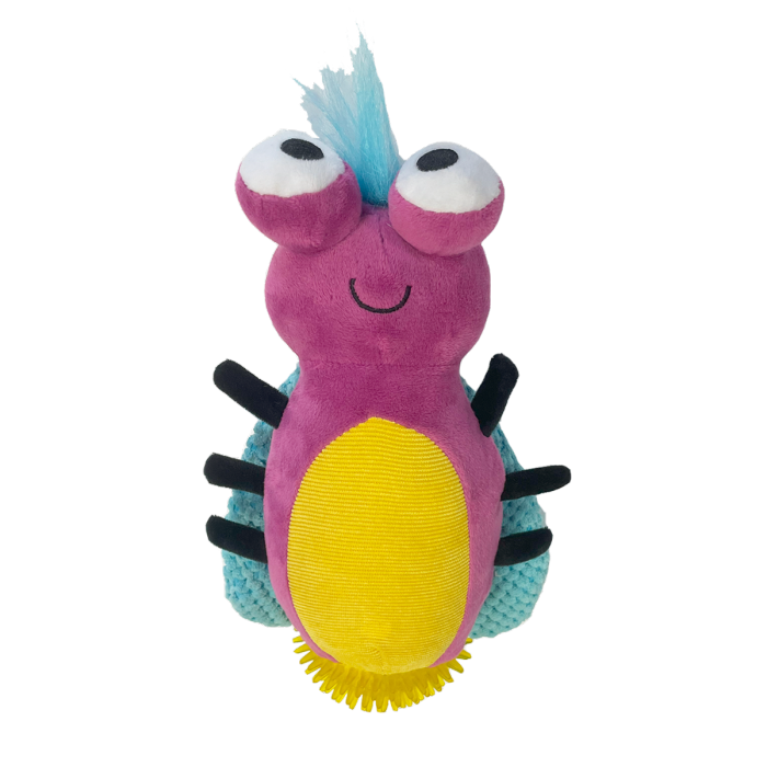 A thrilling and engaging soft dog toy designed to light up your furry friend's playtime with excitement and interactivity. This innovative Flashy Bug toy seamlessly combines the plush comfort of a soft toy with the stimulating allure of a flashing TPR ball for hours of entertainment. Crafted from high-quality plush material this toy provides snuggly and reassuring texture, perfect for cuddles and relaxation. Within the plush toy is a durable TPR ball with LED lights. When your dog interacts with the toy, the ball emits a flashing light which adds an extra layer of excitement and engagement to playtime.