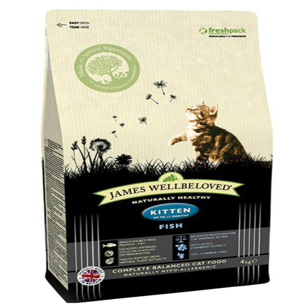 KITTEN VARIETY All the nourishment required for a healthy kitten. A complete and balanced food with all the vitamins and minerals your kitten needs. Highly digestible and easily absorbed goodness. This produces small, firm stools and minimal litter tray waste and smell Kittens love the taste of fish. Now James Wellbeloved has made a mouth watering Ocean White Fish & Rice recipe for your feline companion. Our new, exciting variant captures the freshness and bounty of one of nature's great providers - the oceans. Feed James Wellbeloved Ocean White Fish & Rice to your kitten and see how healthy she looks. Even fussy cats love it. Prepare to be amazed! Natural, healthy, ingredients. No added artificial colours, flavours or preservatives. Pure and hypo-allergenic. Special Omega-3 oils for a soft, shiny coat. A natural approach to urinary tract health. The same delicious taste, right across the range. Natural, healthy, ingredients. With no added artificial colours, flavours or preservatives. Ocean White Fish & Rice kitten food is a complete dry food full of natural ingredients. Succulent fish, rice, maize, tomato, carrot and potato. All baked into crunchy nuggets and smothered in delicious olive oil. With no unhealthy additives. Pure and hypo-allergenic. Kittens can suffer from food allergies, producing poor skin and coat condition and stomach problems. The most common allergens are milk, beef, and wheat. So Ocean White Fish & Rice cat food contains none of these problem ingredients and thus avoids the allergies. Your kitten could be fitter and healthier as a result. Special Omega-3 oils for a soft, shiny coat. A healthy diet makes for a glowing coat. As well as all the vitamins and minerals your cat needs, we've included a unique blend of Omega-3 oils to nourish and condition your kitten's coat to a silky soft, glossy shine. A natural approach to urinary tract health. We've added natural cranberry extracts, known to be beneficial to urinary tract hygiene. And kept the magnesium level low to help keep your kitten's urinary system in perfect health. The same delicious taste, right across the range. Ocean White Fish & Rice comes in 3 varieties: Kitten, Adult and Senior/Light. All have the same delicious taste. So you avoid the health and taste problems of changing brands at the different stages of your cat's life. Ingredients: White rice (min 26%), white fish meal (min 25%), prairie meal, olive oil, potato protein (min 9%), vegetable, fish oil,tomato, chicory extract, carrot, cranberry extract (min 0.05%), DL methionine, lysine hydrochloride, taurine, threonine, zinc methionate, yucca extract, rosemary oil. Typical analysis: Protein 32%, oil 20%, ash 8%, fibre 1.8%. Vitamins (i.u. per kg): vitamin A 25,000; vitamin D3 1500; vitamin E (alpha-tocopherol acetate) 200. Copper (cupric sulphate) 15mg per kg. Contains vitamins C and E as mixed tocopherol antioxidants.