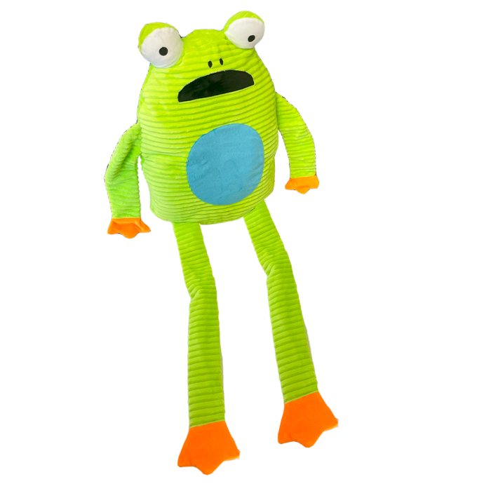 A larger-than-life, huggable companion designed to bring boundless joy and excitement to your furry friend's playtime adventures. This delightful Freddie Frog is not just a toy, but a new best friend for your beloved canine, ready for plenty of cuddles and plenty of playtime! This Freddie Frog has generous sized long legs and arms which have been made out of flat unstuffed crinkle material. The mixture of stuffed and unstuffed soft plush really adds variety making this dog toy different and exciting for any dog. Its oversized stautre is perfect for larger breeds, but dogs of all sizes will find comfort and companionship in its presence.