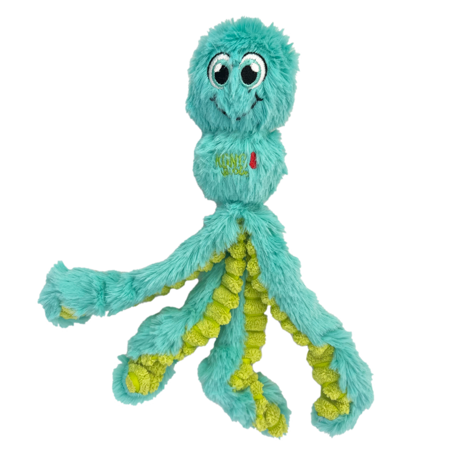 KONG Wubba Octopus’ dangling legs and long, floppy body make him ideal for instinct-satisfying shaking. The squeaker prolongs play. Ideal for indoor tugging, shaking and fetching fun, this adorable undersea pal’s great for snuggling, too, thanks to his super-soft plush. Minimal stuffing for less mess.