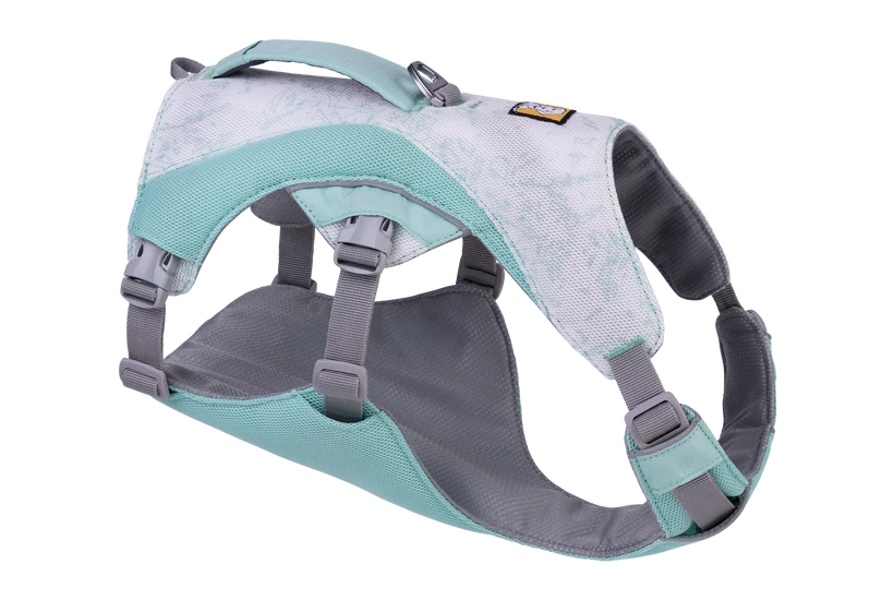 The Swamp Cooler Harness is an all-in-one cooling solution for dogs exploring in hot conditions. This harness integrates our Swamp Cooler™ evaporative cooling tech with Ruffwear's reliable multi-use body harness platform. Ruffwear's signature strong leash connection points, high adjustability, quick-grab handle, and easy on/off features are elevated by cooling capability throughout the back panel and supportive chest/belly panel. The Swamp Cooler Harness adds a cool factor to a harness designed to keep the adventure going, when the temps are high and your dog's stoke for exploration is even higher.