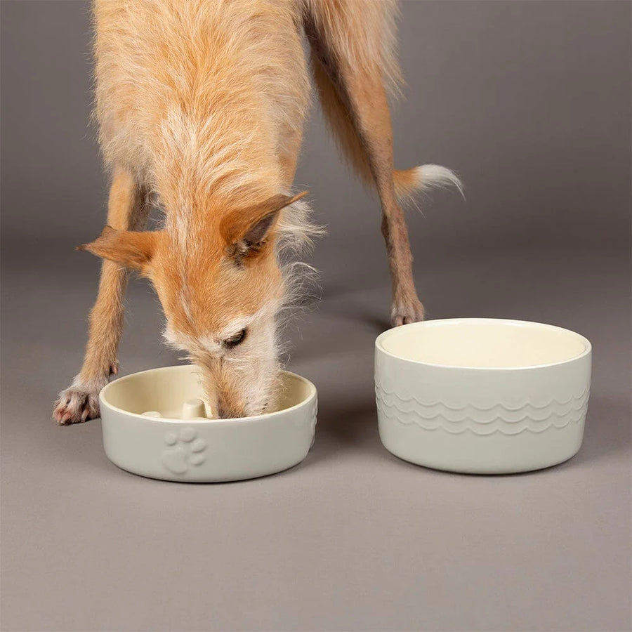 Our heavy stoneware ceramic dog bowls help prevent dogs from moving the bowls when eating or drinking.